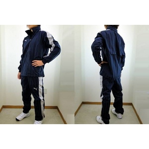 - 【送料無料】PUMA(プーマ) 裏付きウィンドブレーカー上下セット 862244-862245-82 Mサイズ ネイビー×シルバー