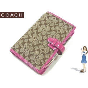 - 【送料無料】Coach(コーチ) システム手帳 シグネチャー カーキ/ピンク 60358