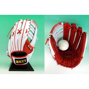 - 【送料無料】【オーダーサンプル】 ZETT(ゼット)プロステイタス軟式グローブ 外野手用 鉄平型 レッド×ホワイト 右投用